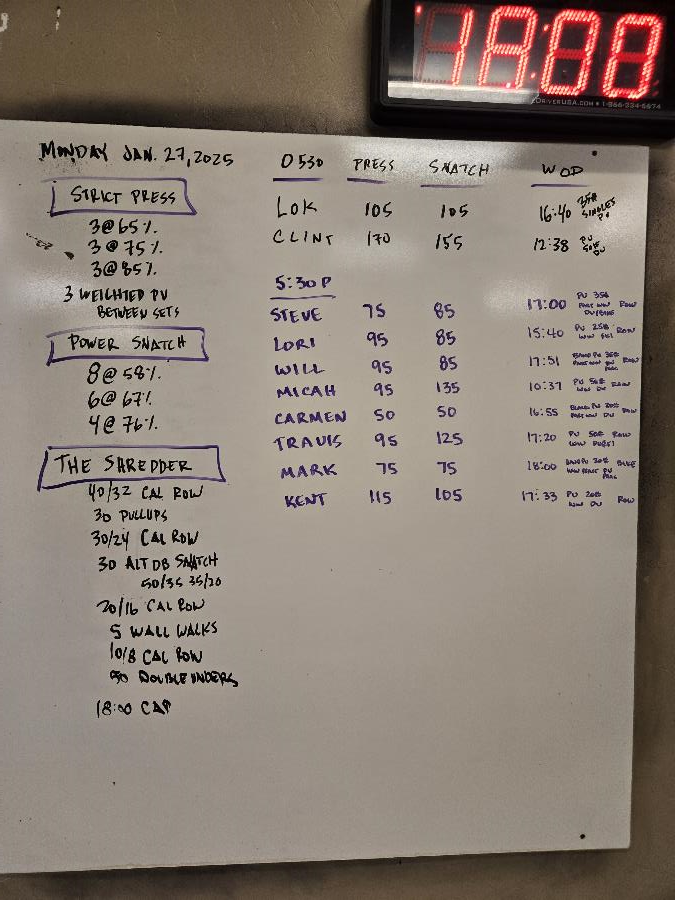 | Strict Press Mon Jan 27 2025 | Power Snatch Mon Jan 27 2025 | The Shredder |