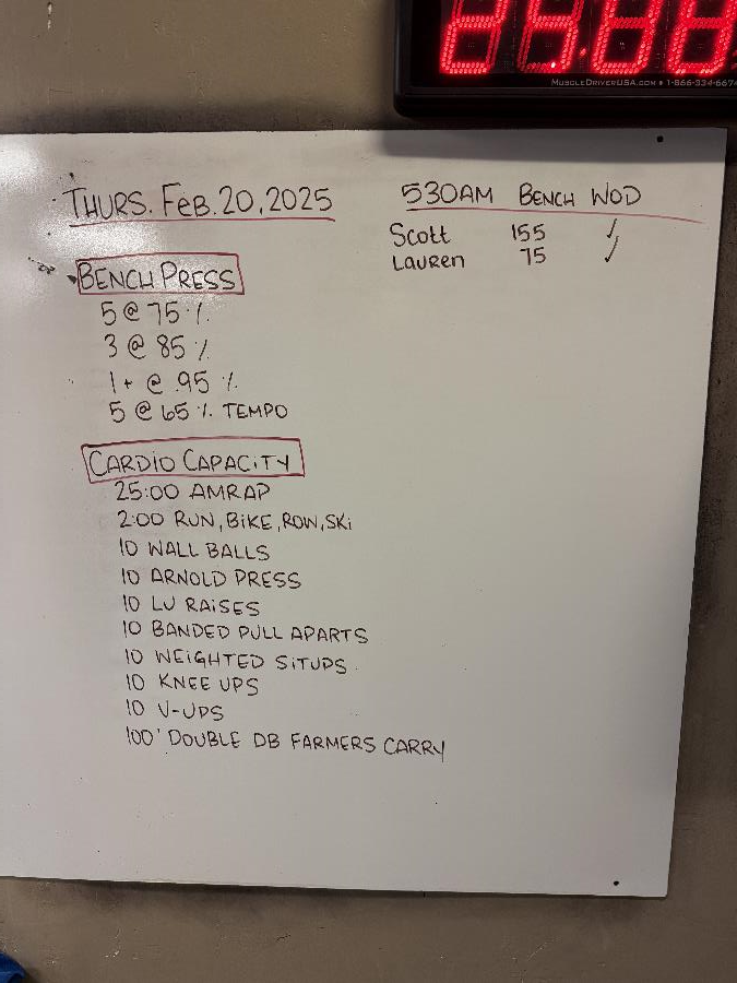 | Bench Press Thu Feb 20 2025 | Cardio Capacity Thu Feb 20 2025 |