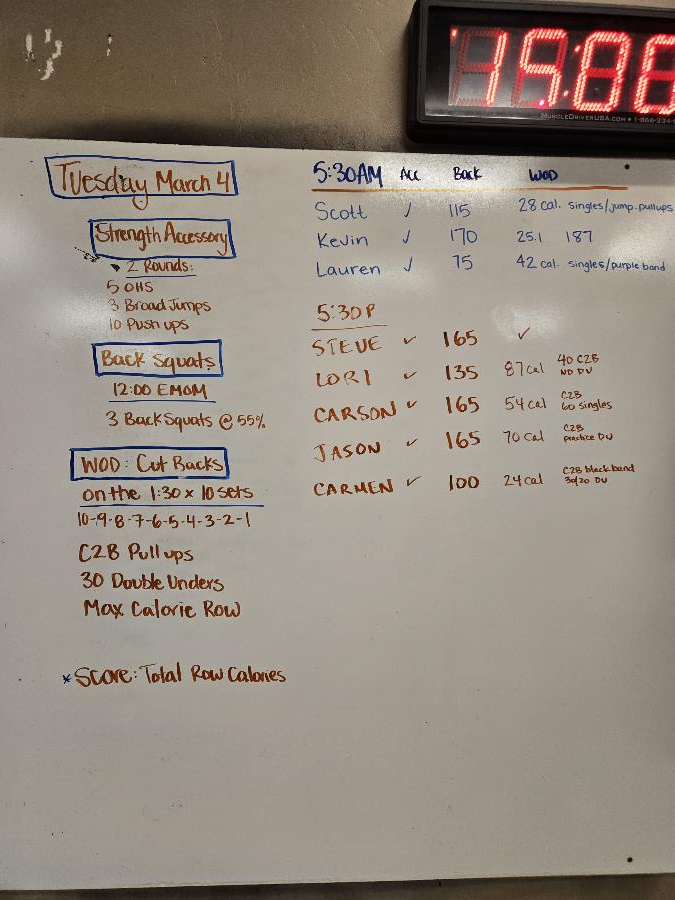 | Strength Accessory Tue Mar 4 2025 | Back Squats Tue Mar 4 2025 | Cut Backs |
