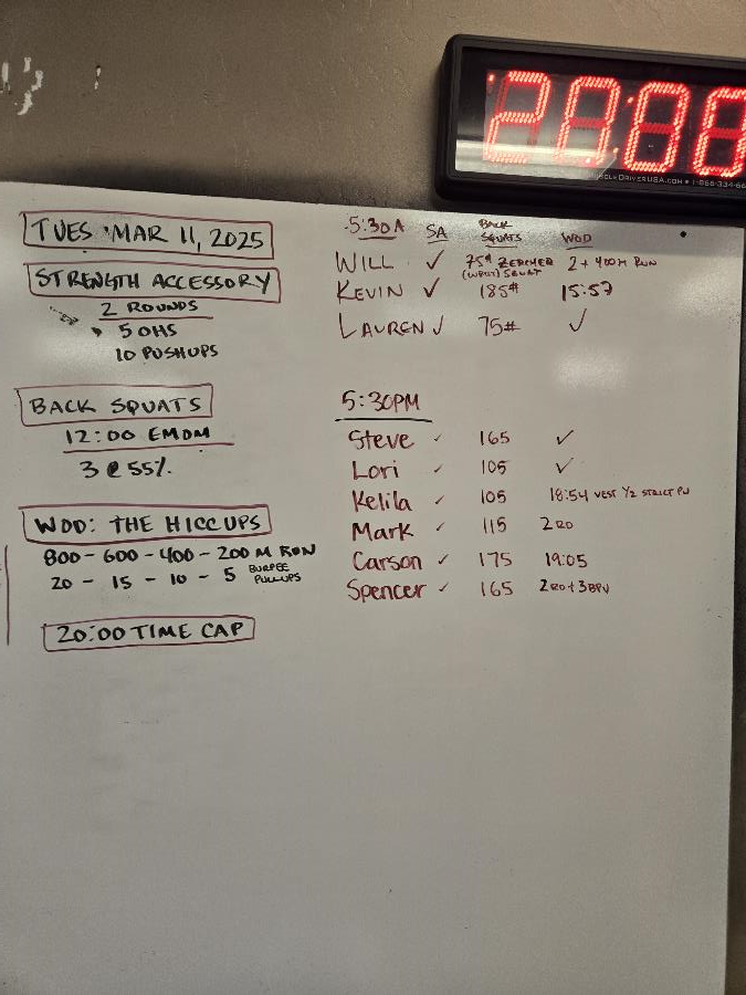 | Strength Accessory Tue Mar 11 2025 | Back Squats Tue Mar 11 2025 | The Hiccups |