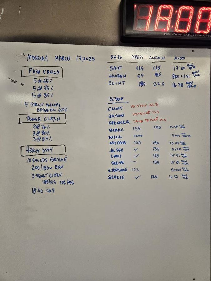 | Push Press Mon Mar 17 2025 | Power Clean Mon Mar 17 2025 | Heavy Duty |