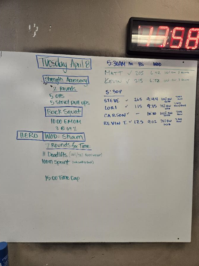 | Strength Accessory Tue Apr 8 2025 | Sham | Back Squats Tue Apr 8 2025 |