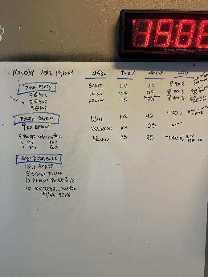 | Push Press Mon Apr 14 2025 | Power Snatch Waves Mon Apr 14 2025 | Doorbell |