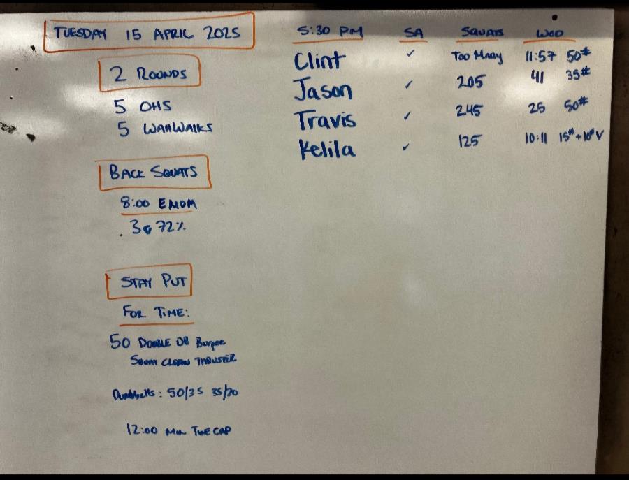 | Strength Accessory Tue Apr 25 2025 | Stay Put | Back Squats Tue Apr 15 2025 |