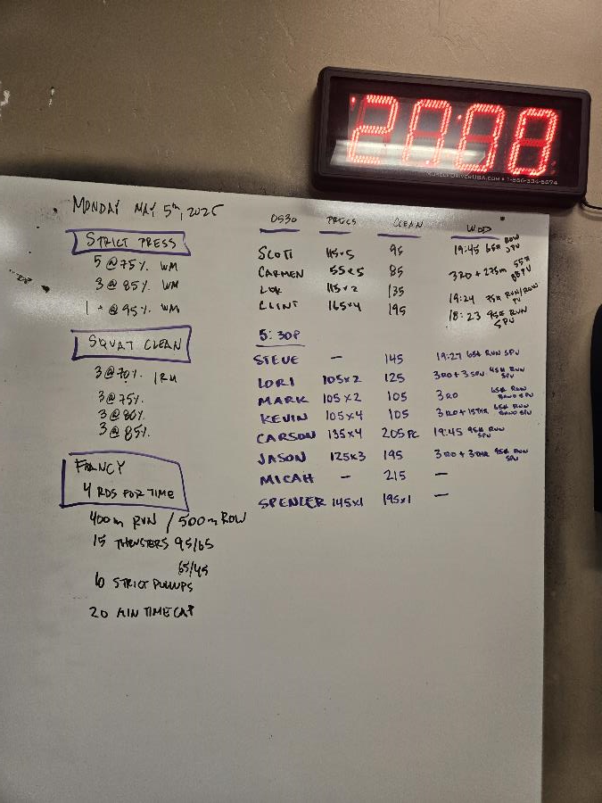 | Strict Press Mon May 5 2025 | Squat Clean Mon May 5 2025 | Francy |