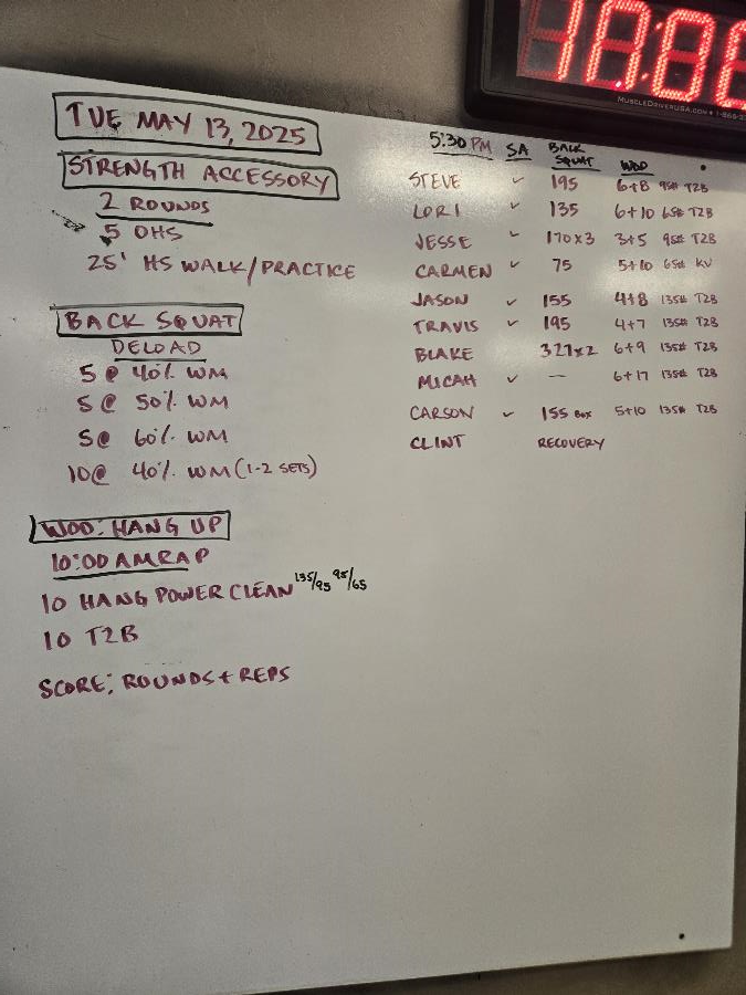 | Strength Accessory Tue May 13 2025 | Back Squat Tue May 13 2025 | Hang Up |