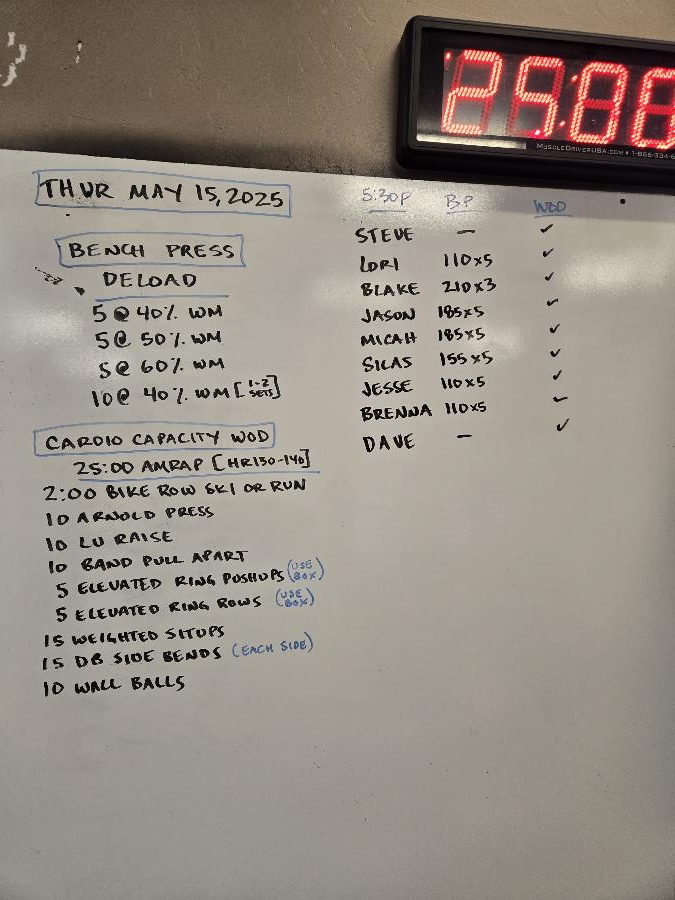 | Bench Press Thu May 15 2025 | Cardio Capacity Thu My 15 2025 |