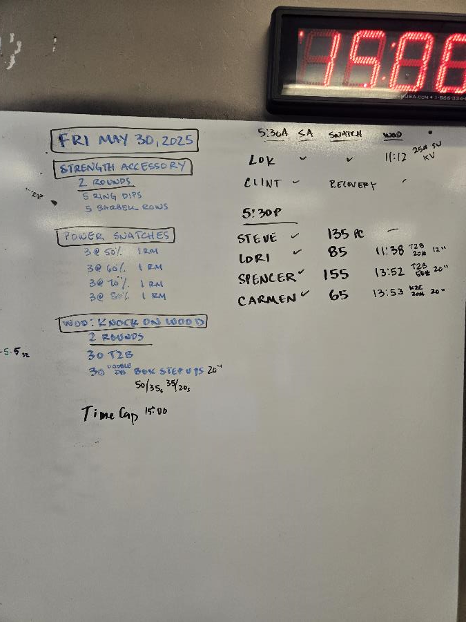 | Strength Accessory Fri May 30 2025 | Power Snatches Fri May 30 2025 | Knock on Wood 1 |