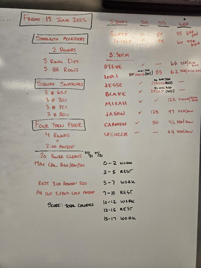 | Strength Accessory Fri Jun 20 2025 | Squat Snatches Fri Jun 20 2025 | Four then Floor |