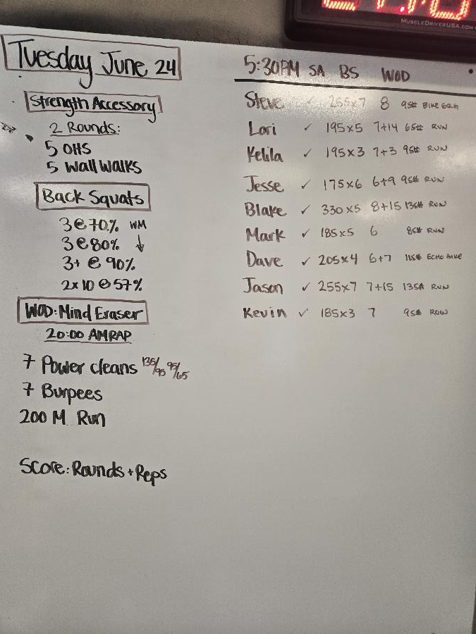 | Strength Accessory Tue Jun 24 2025 | Back Squats Tue Jun 24 2025 | Mind Eraser |