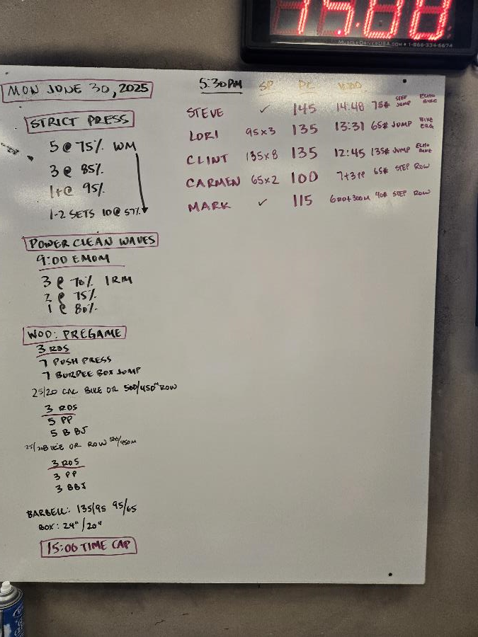 | Strict Press Mon Jun 30 2025 | Power Clean Waves Mon Jun 30 2025 | Pregame |