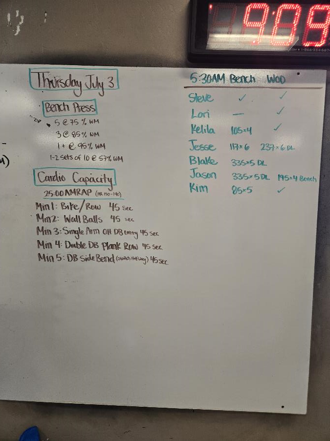 | Bench Press Thu Jul 3 2025 | Cardio Capacity Thu Jul 3 2025 |