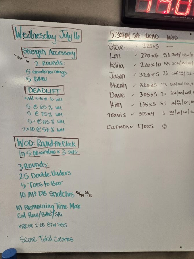 | Strength Accessory Wed Jul 16 2025 | Deadlifts Wed Jul 16 2025 | Round the Clock |