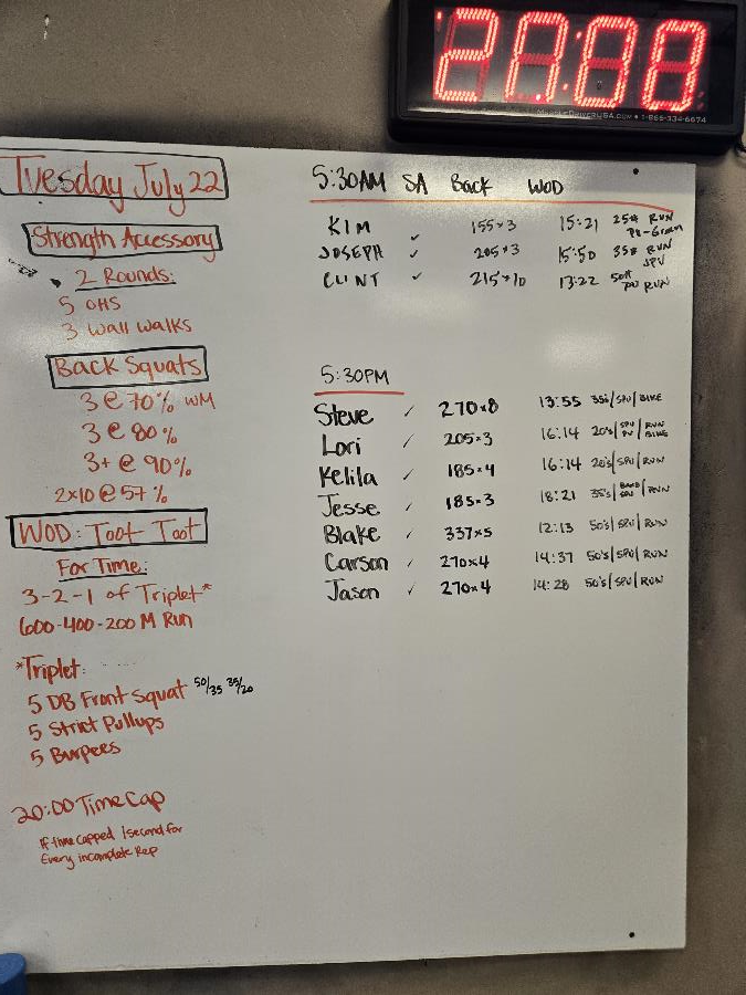 | Strength Accessory Tue Jul 22 2025 | Back Squats Tue Jul 22 2025 | Toot Toot |