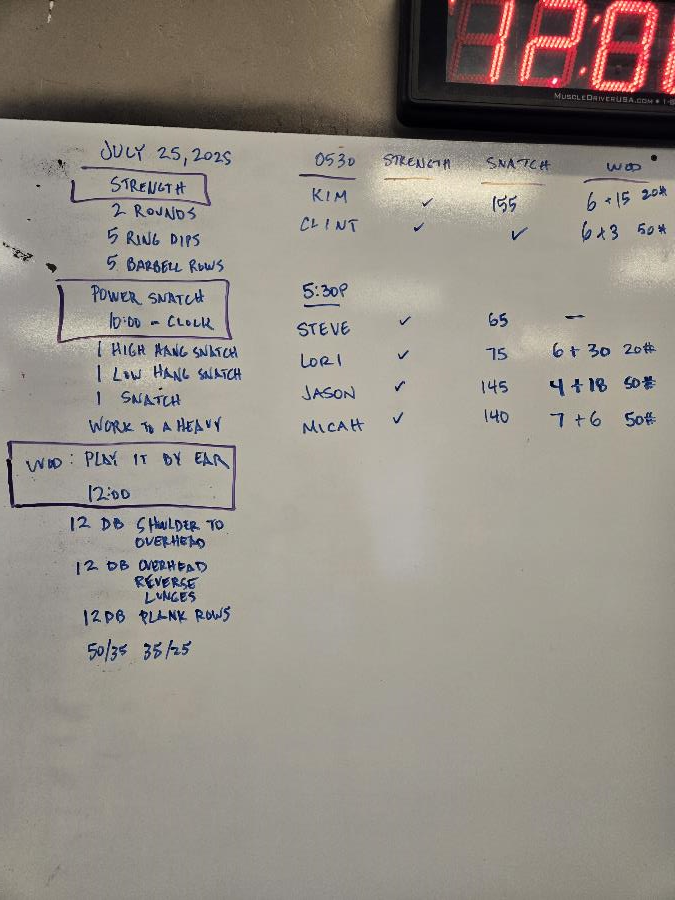 | Strength Accessory Fri Jul 25 2024 | Power Snatch Complex Fri Jul 25 2025 | Play it by Ear |