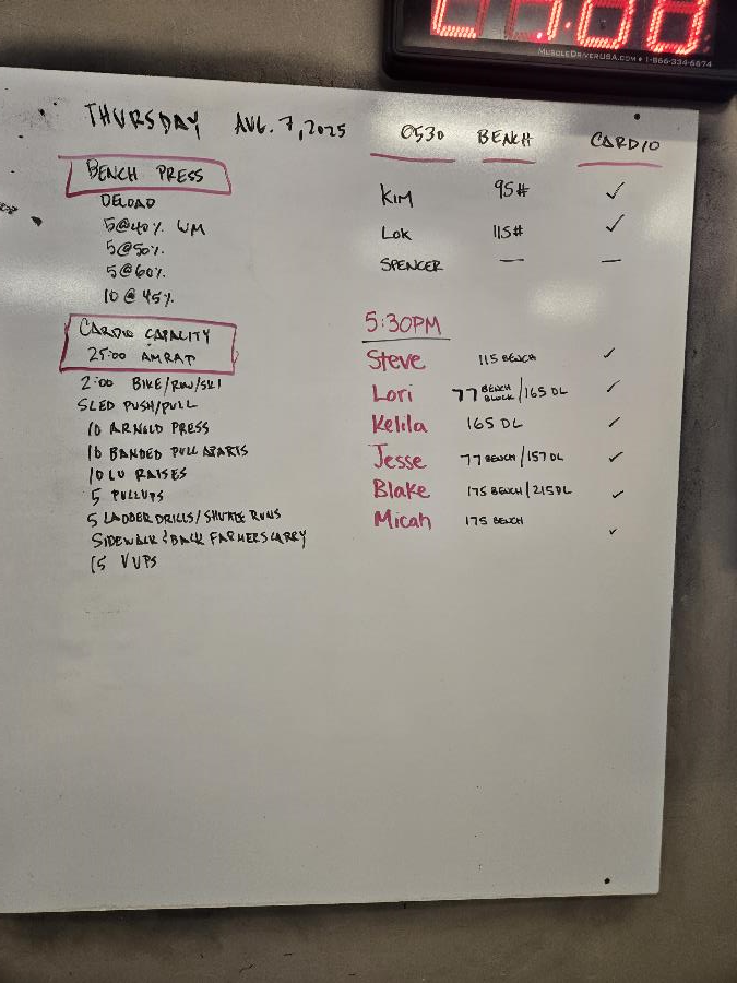 | Bench Press Thu Aug 7 2025 | Cardio Capacity Thu Aug 7 2025 |