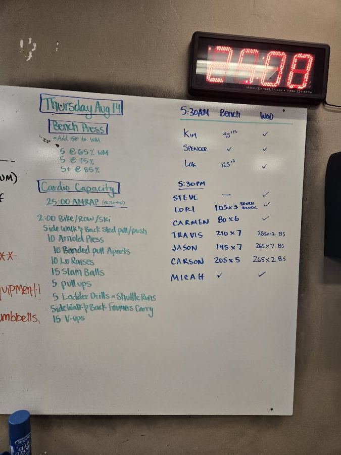 | Bench Press Thu Aug 14 2025 | Cardio Capacity Thu Aug 14 2025 |