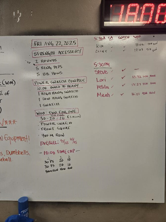 | Strength Accessory Fri Aug 22 2025 | Power Snatch Complex Fri Aug 22 2025 | Two For One |