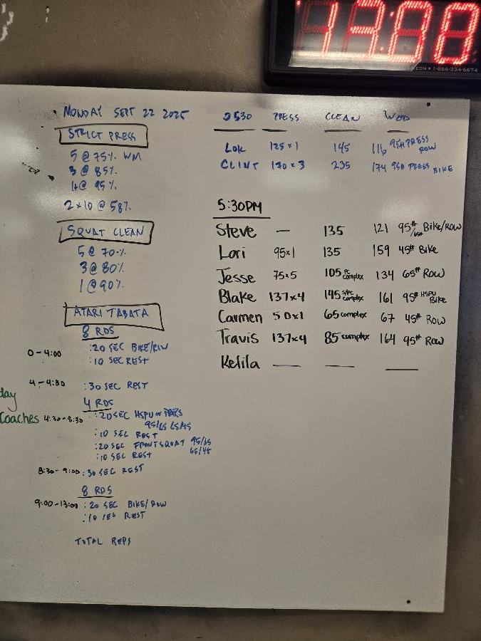 | Strict Press Mon Sep 22 2025 | Squat Clean Mon Sep 22 2025 | Atari |