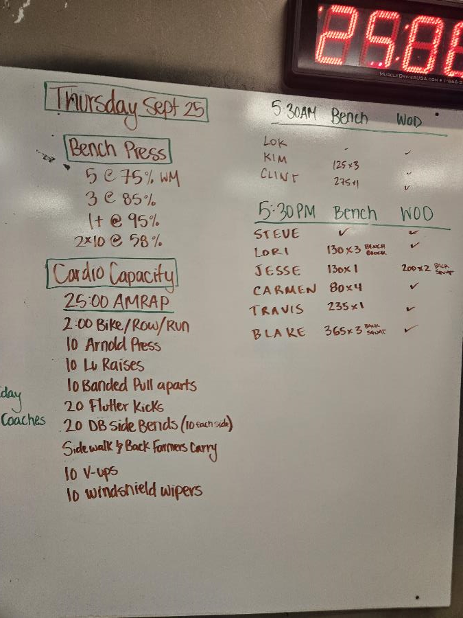| Bench Press Thu Sep 25 2025 | Cardio Capacity Thu Sep 25 2025 |