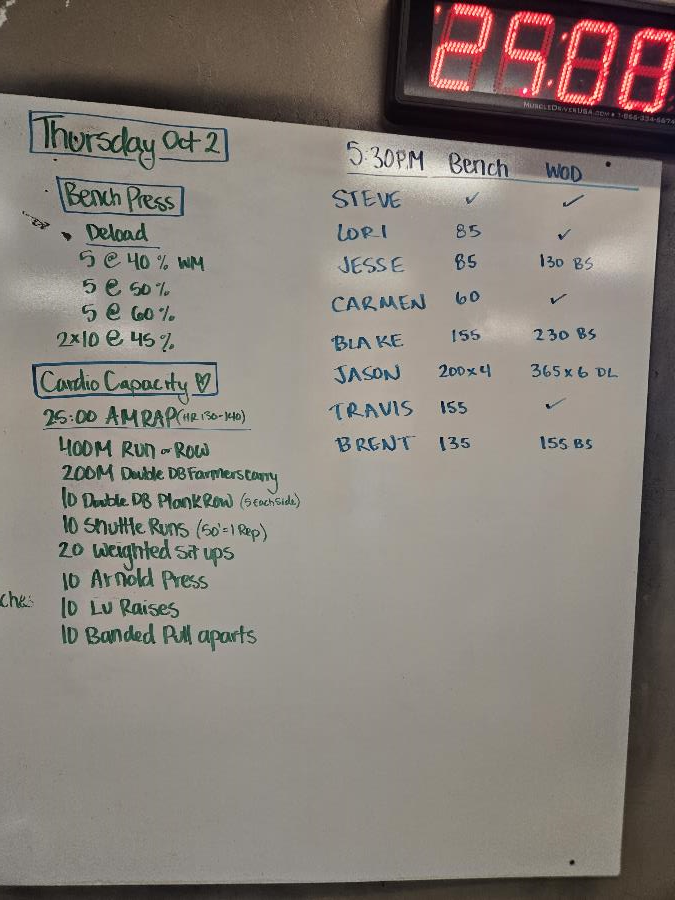 | Bench Press Thu Oct 2 2025 | Cardio Capacity Thu Oct 2 2025 |