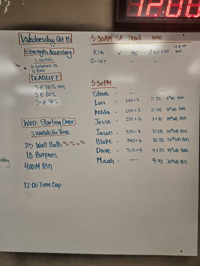 | Strength Accessory Wed Oct 15 2025 | Deadlift Wed Oct 15 2025 | Starting Over 1 |