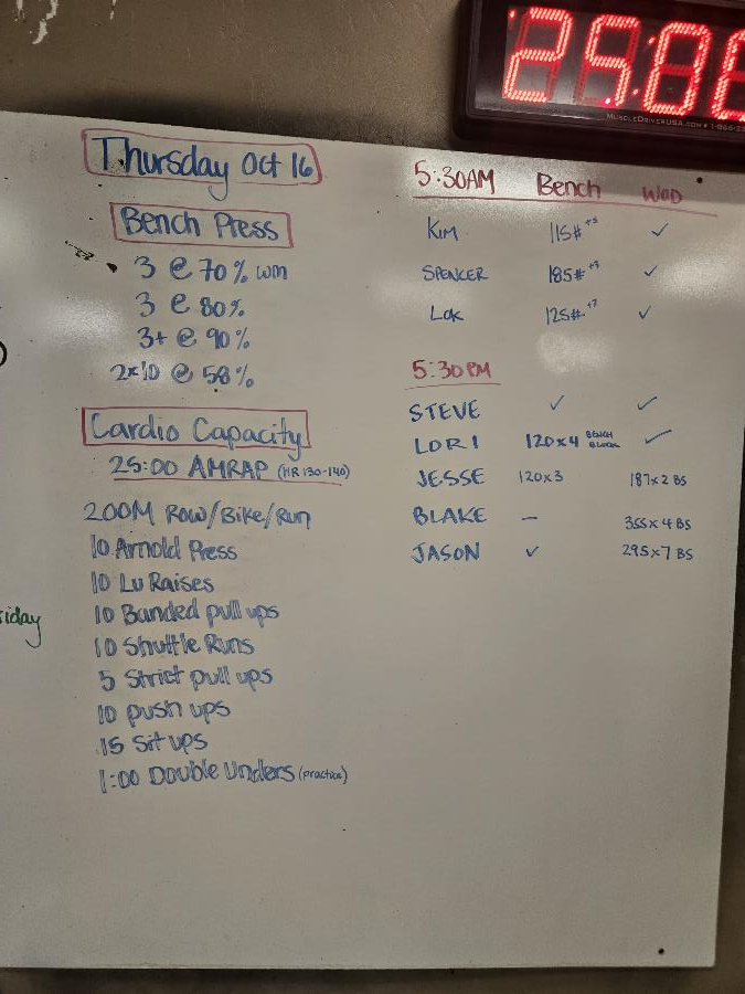 | Bench Press Thu Oct 16 2025 | Cardio Capacity Thu Oct 16 2025 |