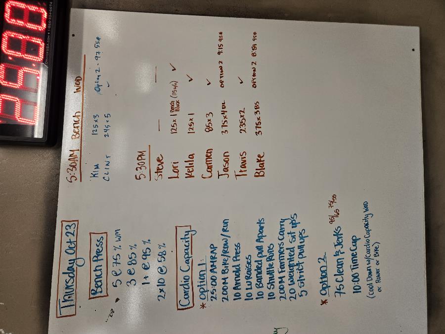 | Bench Press Thu Oct 23 2025 | Cardio Capacity Thu Oct 23 2025 |