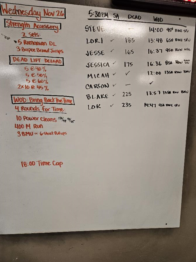 | 2025 CFM Thanksgiving Schedule | Strength Accessory Wed Nov 26 2025 | Deadlift Deload Wed Nov 26 2025 | Bring Back the Time |