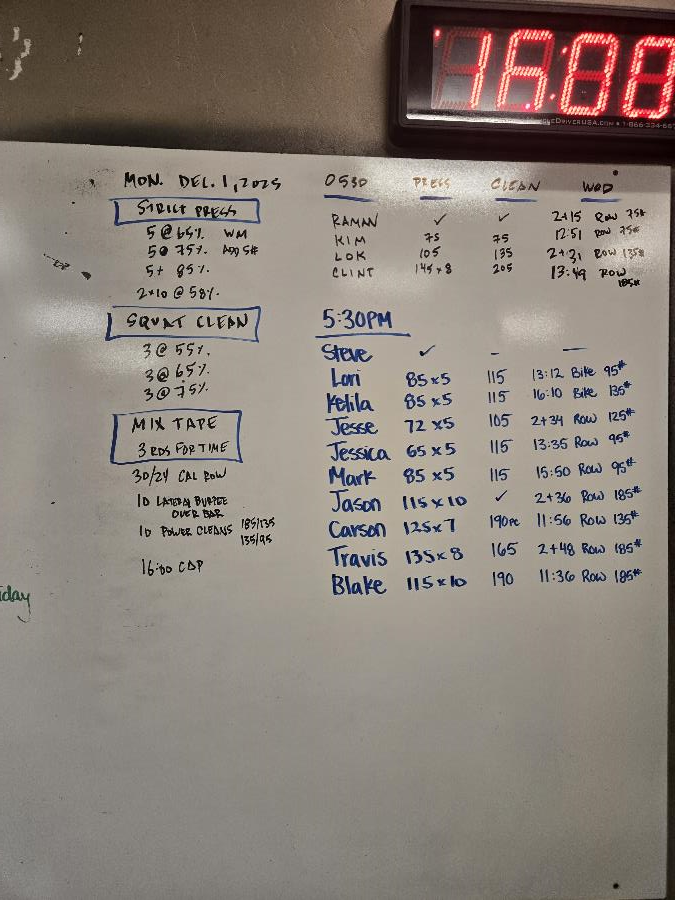 | Strict Press Mon Dec 1 2025 | Squat Clean Mon Dec 1 2025 | Mix Tape |