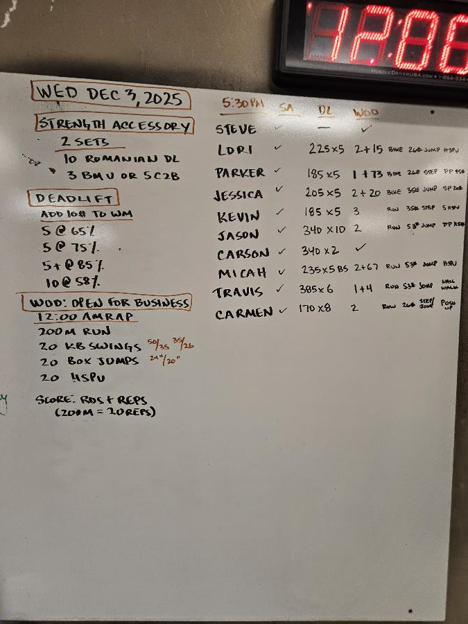 | Strength Accessory Wed Dec 3 2025 | Deadlift Wed Dec 3 2025 | Open for Business |