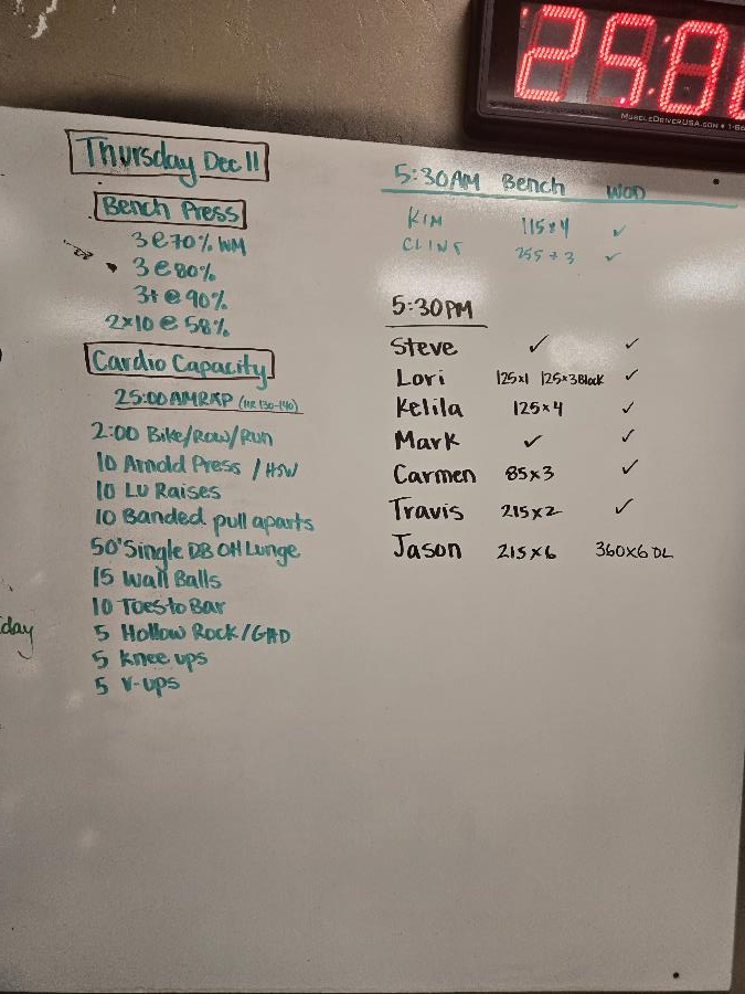 | Bench Press Thu Dec 11 2025 | Cardio Capacity Thu Dec 11 2025 |
