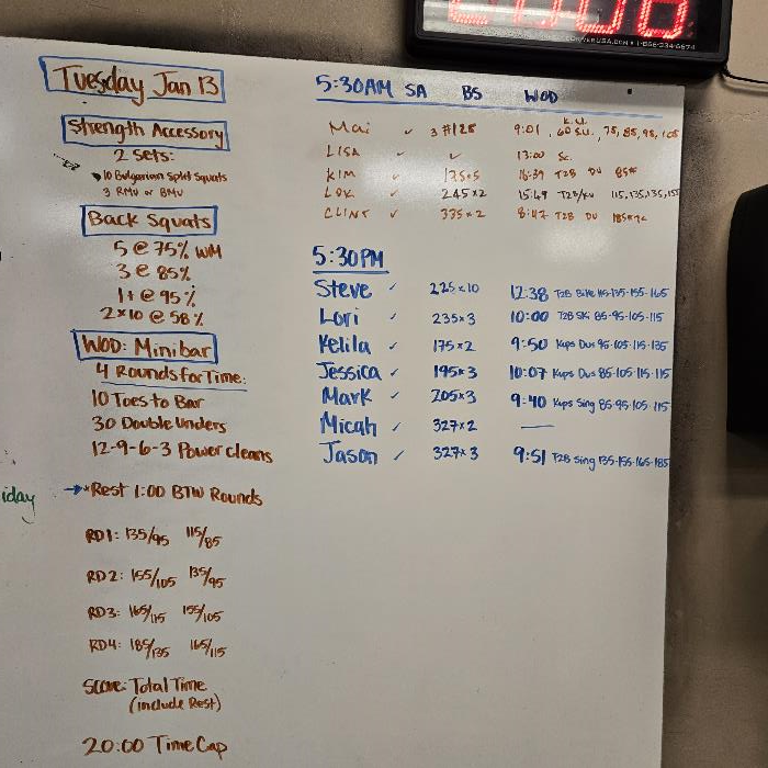 | Strength Accessory Tue Jan 13 2026 | MiniBar | Back Squats Tue Jan 13 2026 |