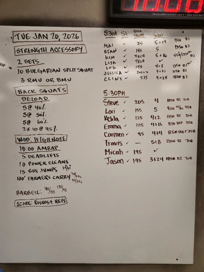 | Strength Accessory Tue Jan 20 2026 | Back Squats Deload Tue Jan 20 2026 | High Note |