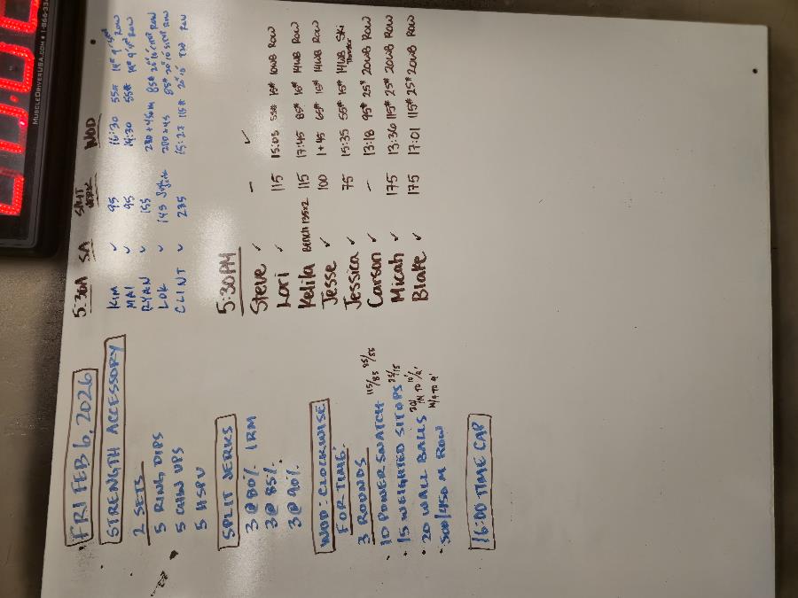 | Strength Accessory Fri Feb 6 2026 | Split Jerks Fri Feb 6 2026 | Clockwise |