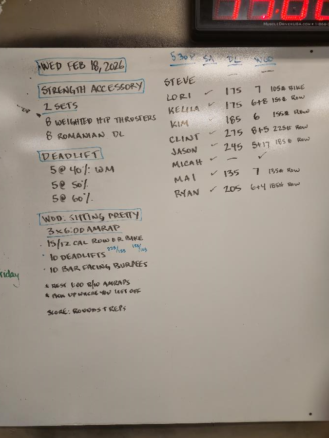 | Strength Accessory Wed Feb 18 2026 | Deadlift Wed Feb 18 2026 | Sitting Pretty |
