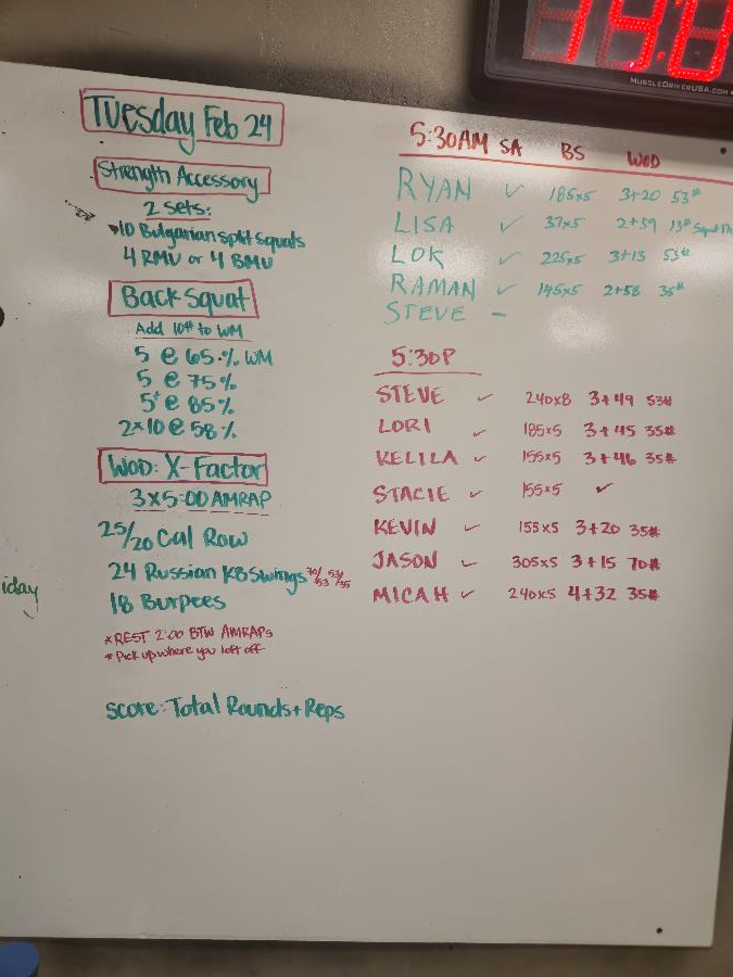 | Strength Accessory Tue Feb 24 2026 | Back Squat Tue Feb 24 2026 | X-Factor |