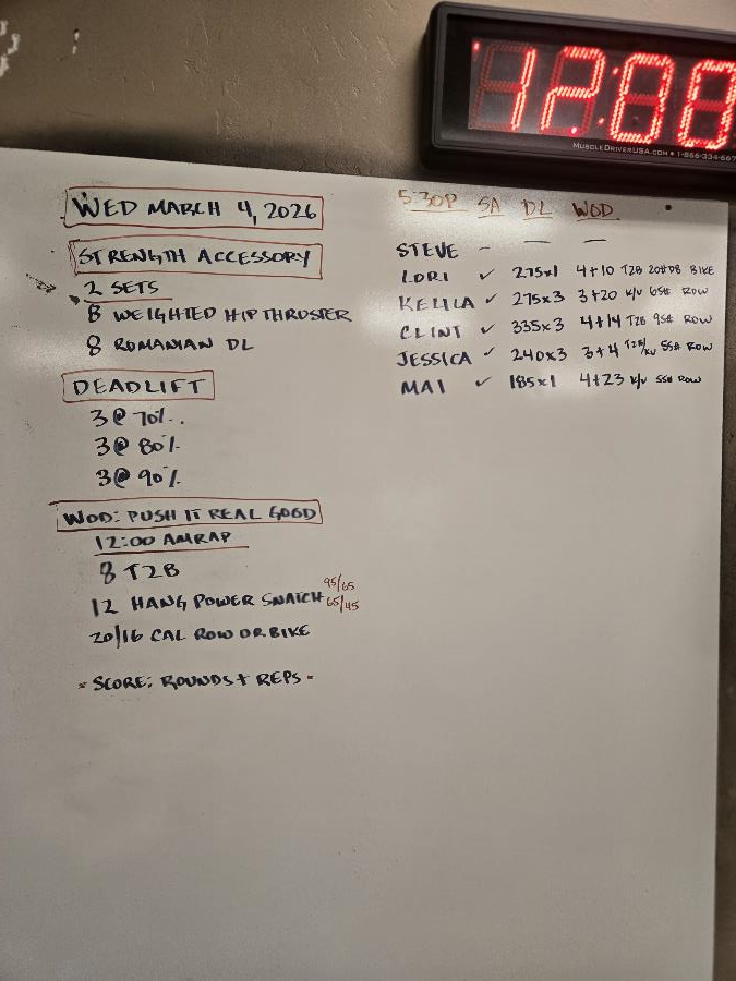 | Strength Accessory Wed Mar 4 2026 | Deadlift Wed Mar 4 2026 | Push It Real Good |