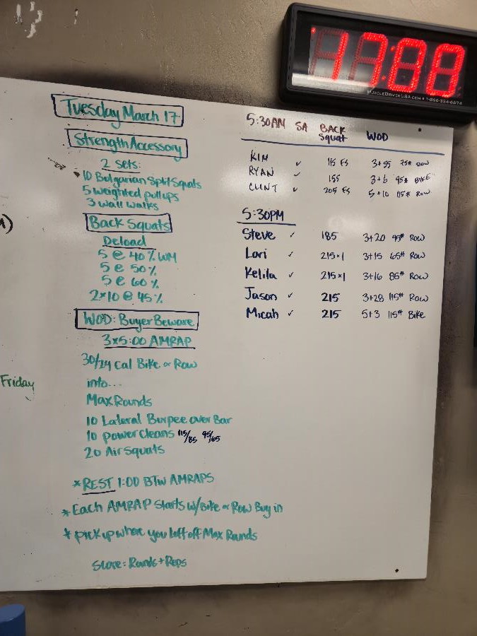| Strength Accessory Tue Mar 17 2026 | Back Squat Tue Mar 17 2026 | Buyer Beware |